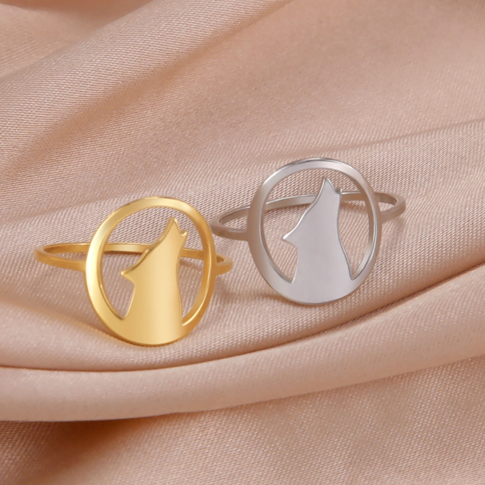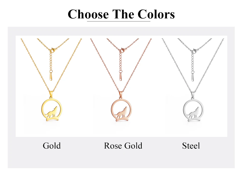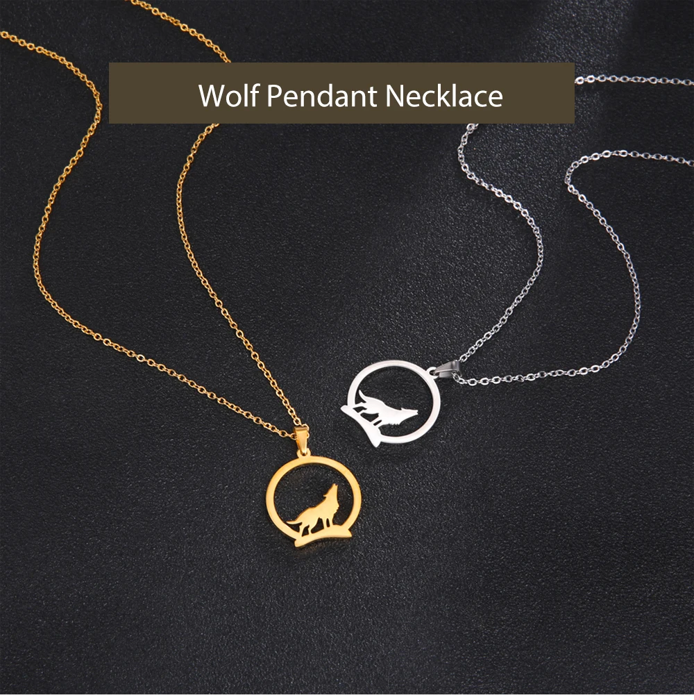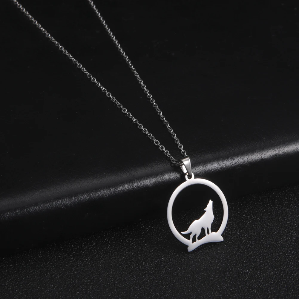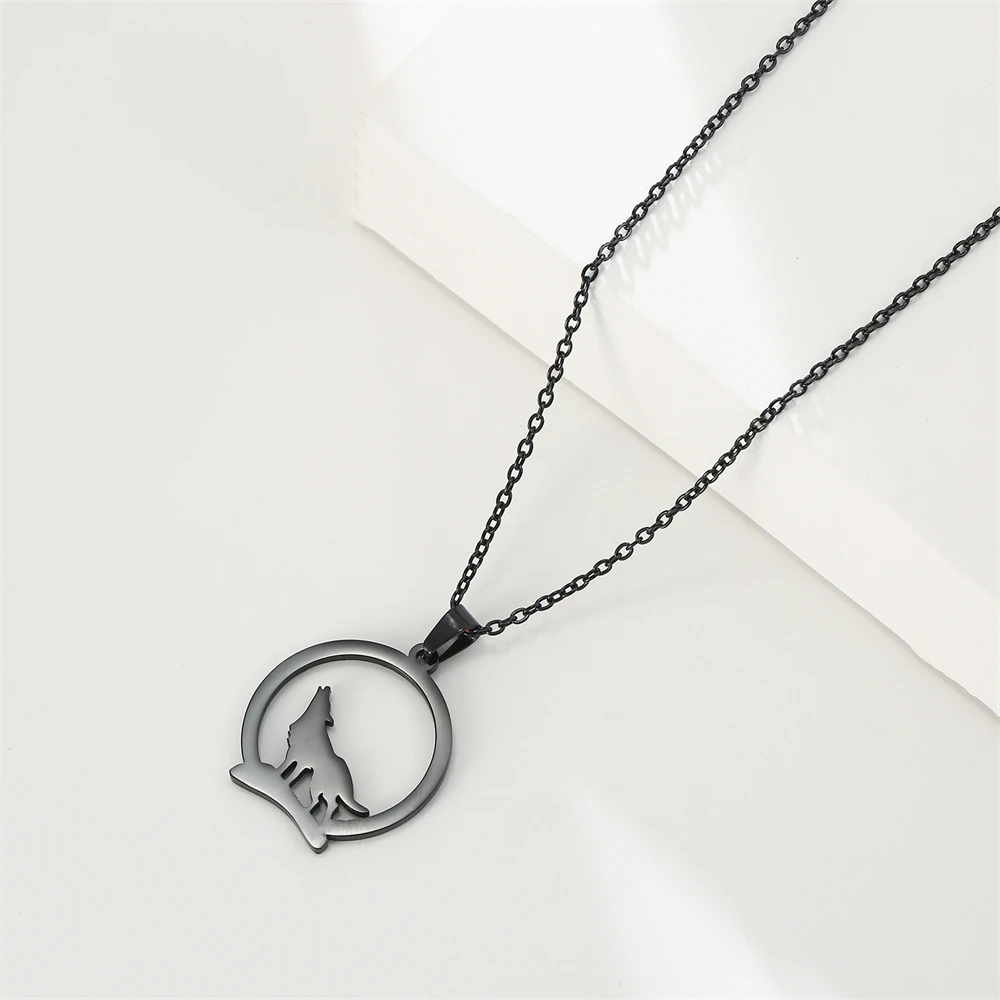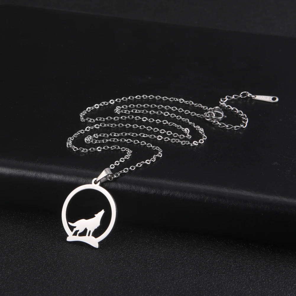 Gold Color Hollow Wolf on the Hill Animal Pendant Necklaces for Women Men Stainless Steel Jewelry