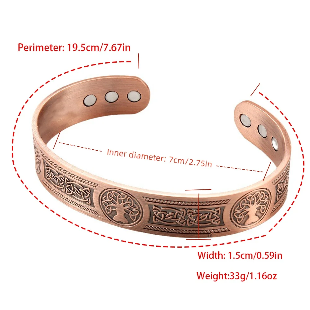Hot selling magnet retro bracelet with life tree pattern arrangement, magnetic men's antique copper bracelet