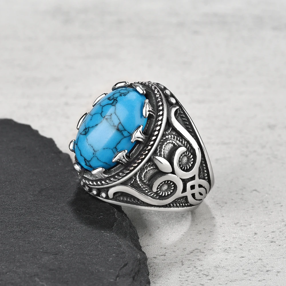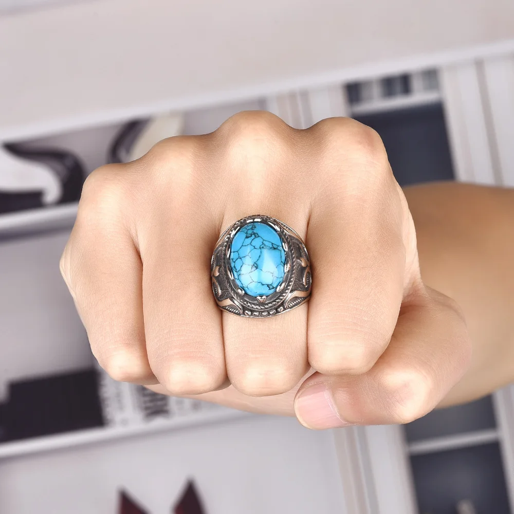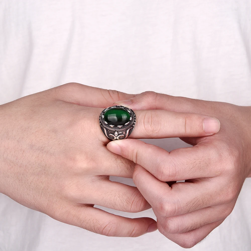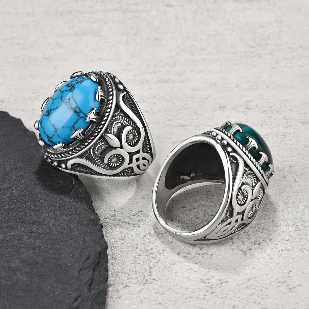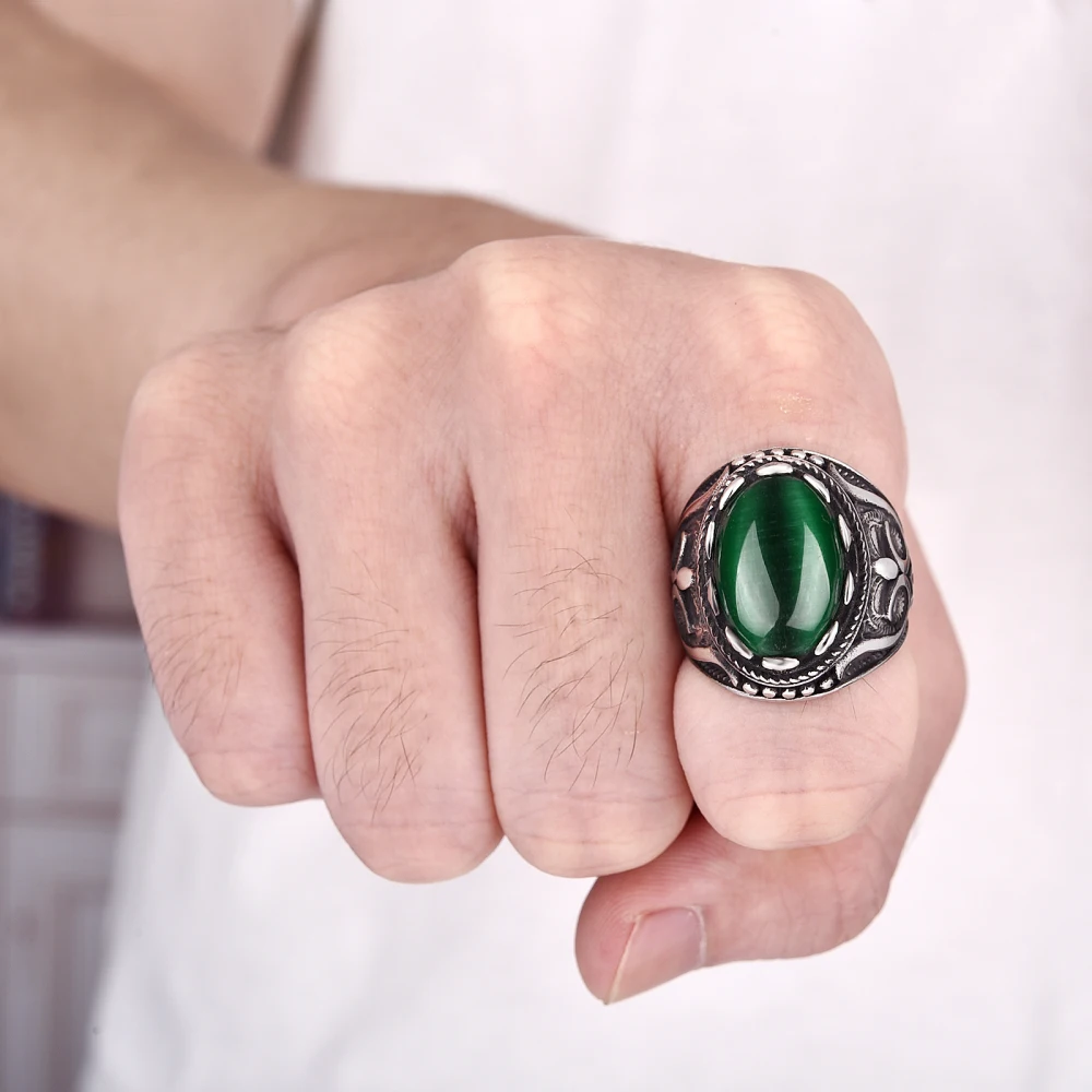 Retro Tiger Eye Green Cat Eye Stone Blue Turquoise Rings Men Ring Male Wedding Circular Ring Jewelry Gift